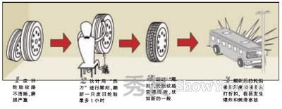 石景山工商人员指出,收购一条废旧轮胎不过三四十元,而翻新后即使按旧轮胎销售,利润也会翻番。这种翻新处理的废旧轮胎虽外表如新,但轮胎的橡胶厚度和强度会在承载力上大打折扣,行驶过程中极易发生爆胎和侧滑等事故,有极大的安全隐患。